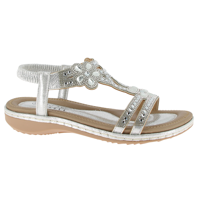 Andrea Conti – sandaalit hopeisilla koristeilla sopivat kesäisiin menoihin ja juhlakengiksi. Lesti on tilava ja sandaalit on helppo laittaa jalkaan.
