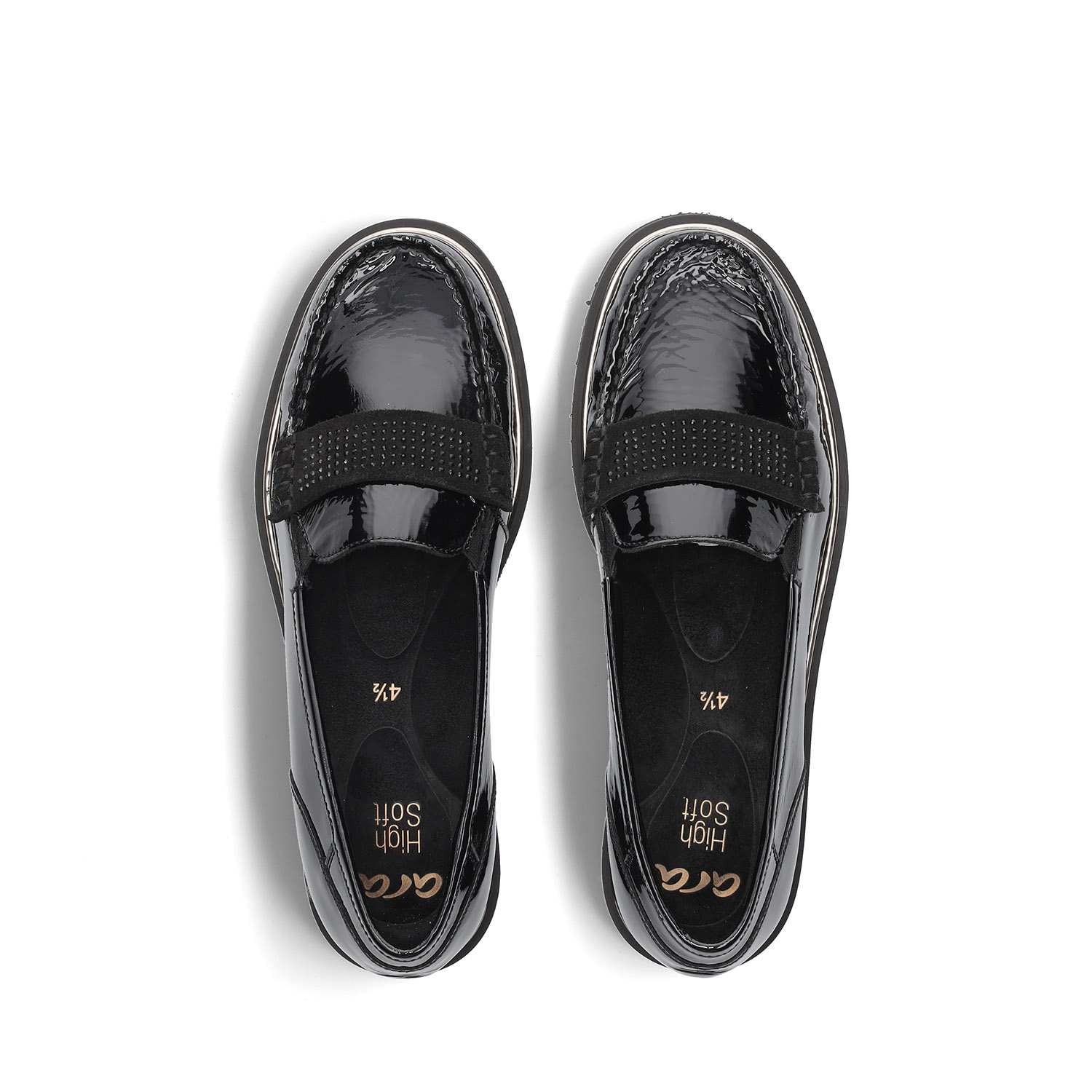 Ara – Dallas 2.0 – nauhattomat kiiltävänahkaiset kävelykengät ovat tyylikkäät ja helppokäyttöiset kengät housujen ja hameen kanssa pidettäviksi. Kiiltävä nahka tuo tyylikkyyttä. Pohjallinen on muotoiltu ja irroitettava High Soft -pohjallinen. Lestin leveys on H.