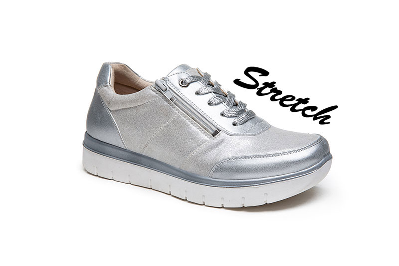 G-Comfort – kävelykengät vetoketju- ja nauhakiinnityksellä ovat tyylikkäät ja mukavat käyttökengät kesäisiin menoihin. Kengissä on hopeinen ja valkoinen joustava päällinen, irroitettava sisäpohja ja pitävä kumipohja. Vetoketjun ansiosta kengät on helppo laittaa jalkaan ja nauhojen avulla saa säädettyä kengät sopivalle tiukkuudelle.