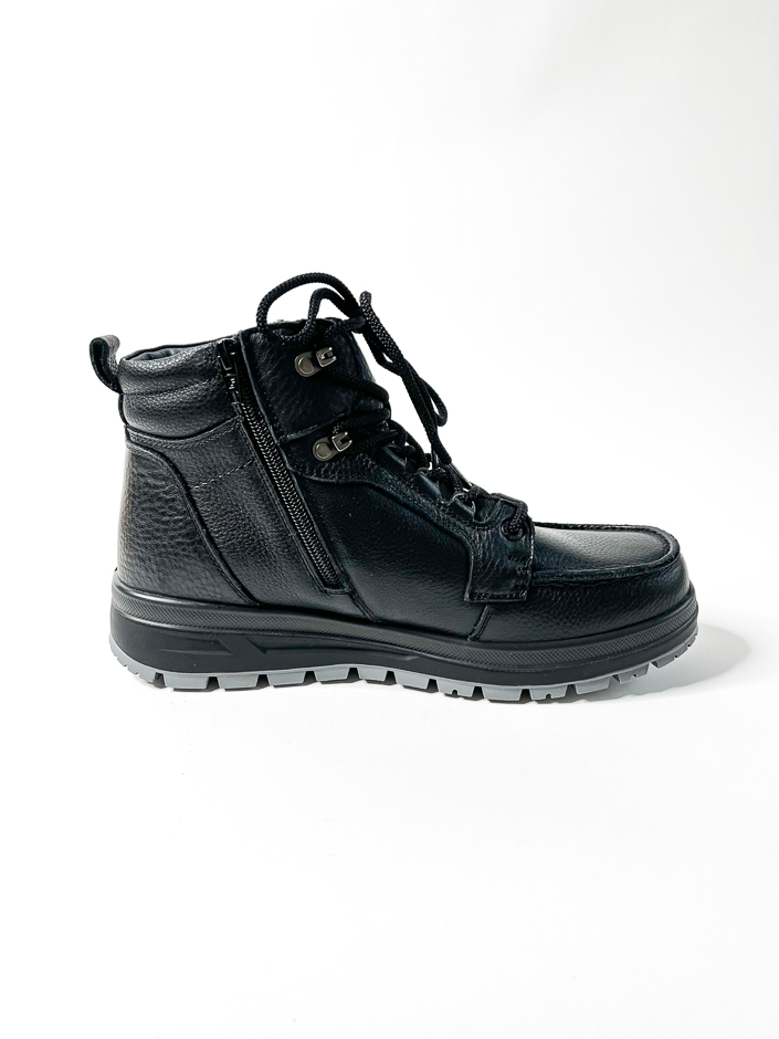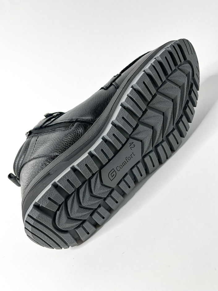 G-Comfort – miesten nilkkurit Tex-kalvolla. Nämä vaelluskengän tyyppiset talvikengät sopivat hyvin syksyn ja talven keleihin ja kosteammallekin säälle. Sisällä pehmeä ja lämmin vuori. Sisäsivun vetoketju helpottaa kenkien jalkaan laittamista. Kenkien lesti on normaalia leveämpi. Tex-kalvo suojaa sateelta ja kosteudelta.