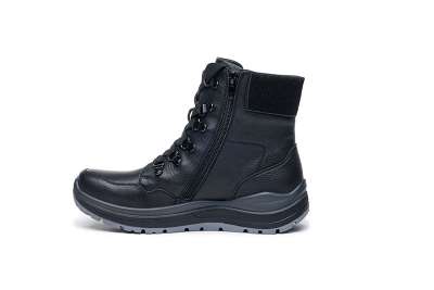 G-Comfort – naisten talvikengät Tex-kalvolla sopivat erinomaisesti syksyn ja talven haastaviin ja vaihteleviin olosuhteisiin. Kengät ovat nahkaa ja Tex -kalvon ansiosta jalat pysyvät kuivina. Ulkosivun vetoketju ja nauhat helpottavat kenkien jalkaan laittamista. Sisäosa on pehmeä ja pohjallinen miellyttävä jalalle. Kengissä on hyvä, jalkaan sopiva lesti.