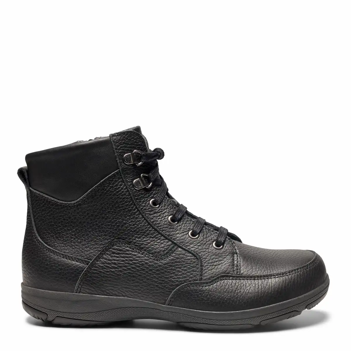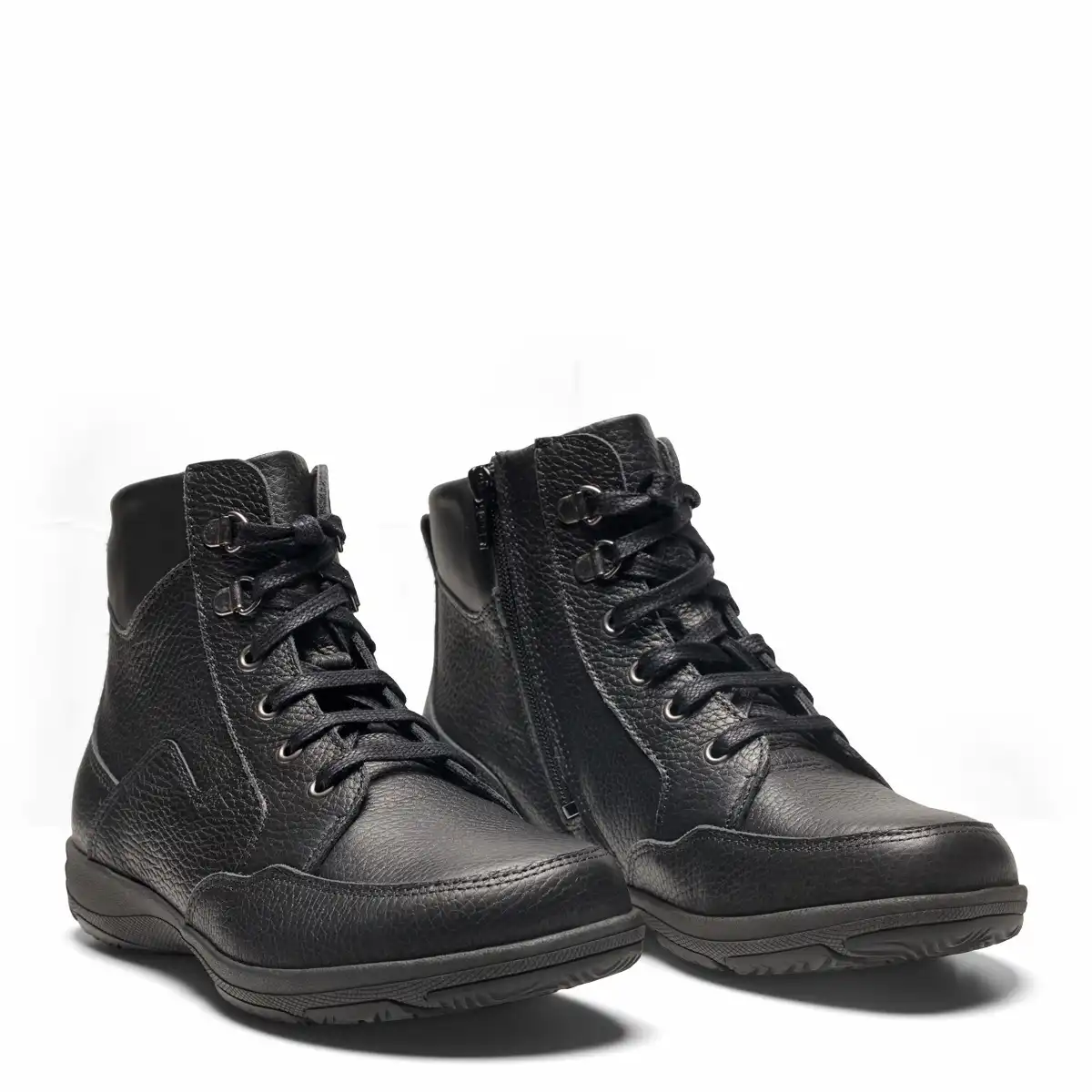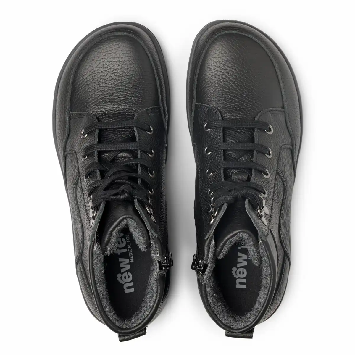 New Feet -kenkämallisto on suunniteltu erityisesti herkille jaloille. Tässä tyylikkäässä nilkkurimallissa on leveä varvastila. Nauhoilla pääset säätelemään istuvuutta ja sisäsivulla oleva vetoketju helpottaa pukemista jatkossa. Malli on päältä kokonaan nahkaa ja sisävuorit on nukkaamatonta, kosteutta siirtävää ja kestävää Picos-materiaalia. Vuori on myös antibakteerinen eikä saumat pääse painamaan. Irrotettavat sisäpohjalliset on 6 mm paksua, kestävää ja kimmoisaa iskunvaimennusmateriaalia ja sen tilalle voi vaihtaa paksummatkin yksilölliset tukipohjalliset. Pohjat ja kantakapit on tehty tukeviksi. Malli sopii leveille jaloille, mutta pysyy oikein hyvin normaalissakin jalassa jos on esim. varpaille leveyden tarvetta.