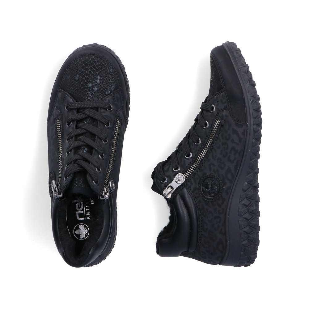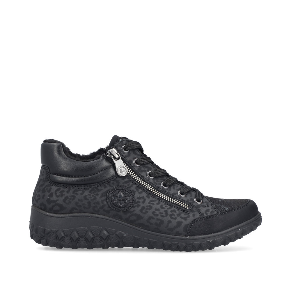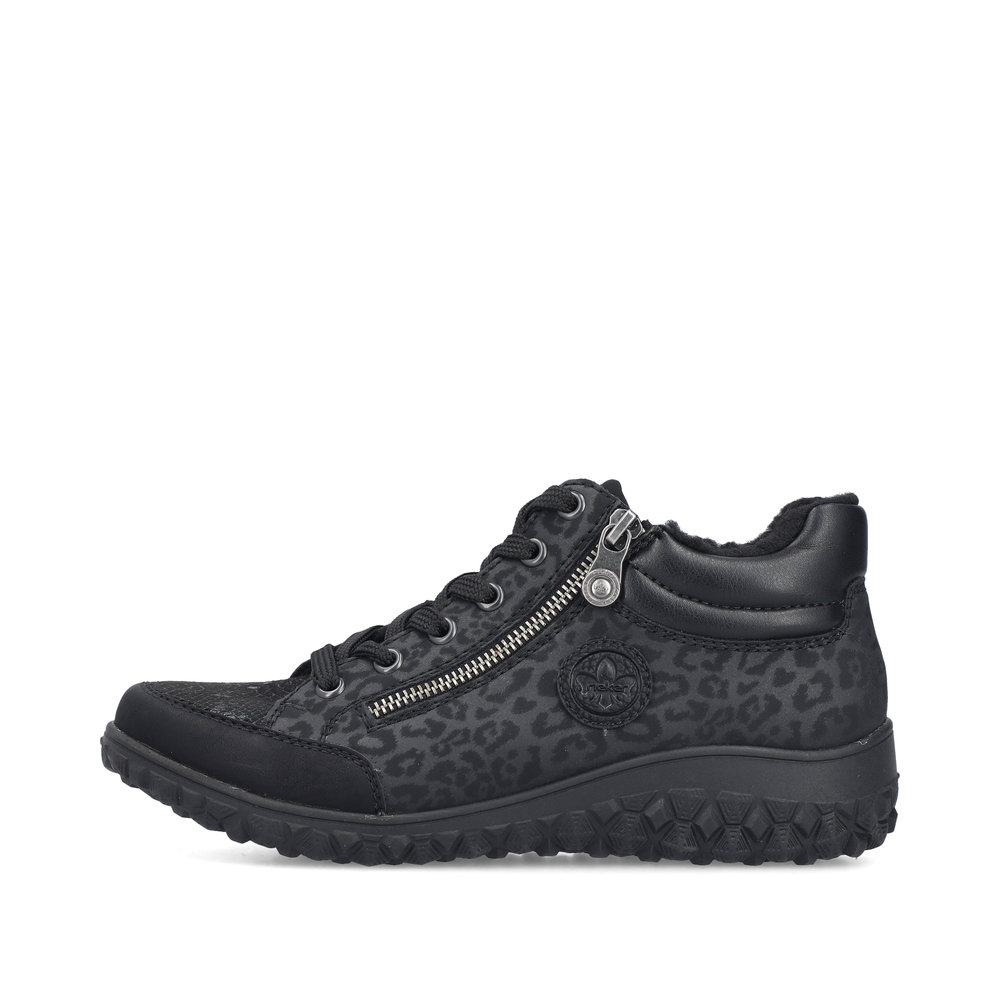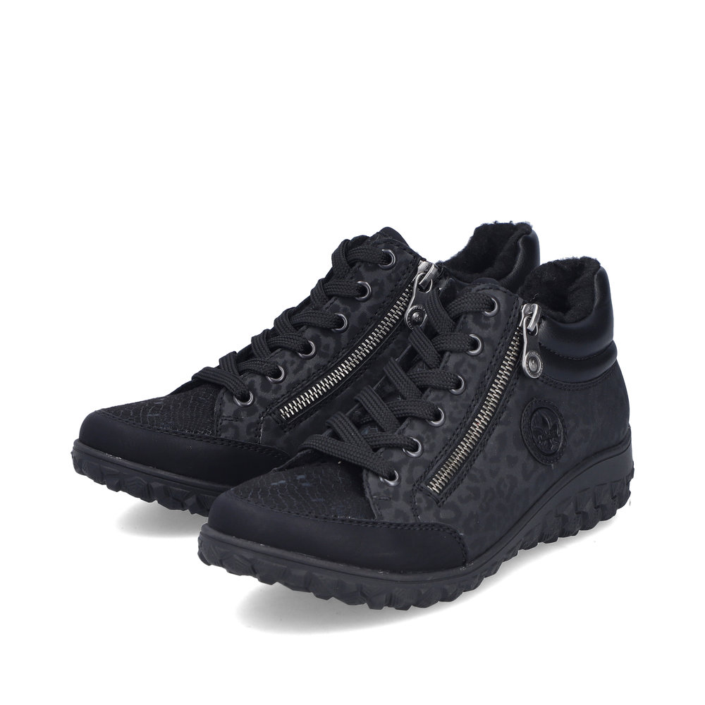 Rieker – kävelykengät kahdella vetoketjulla ja nauhoilla ovat helppokäyttöiset ja todella miellyttävät jalassa. Pehmeä, muotoiltu ja joustava Antistress-pohjallinen tuo käyttömukavuutta ja askel tuntuu rennolta ja kevyeltä. Pohja on kumipohja. Lestin on leveämpi Extra Wide -lesti.
