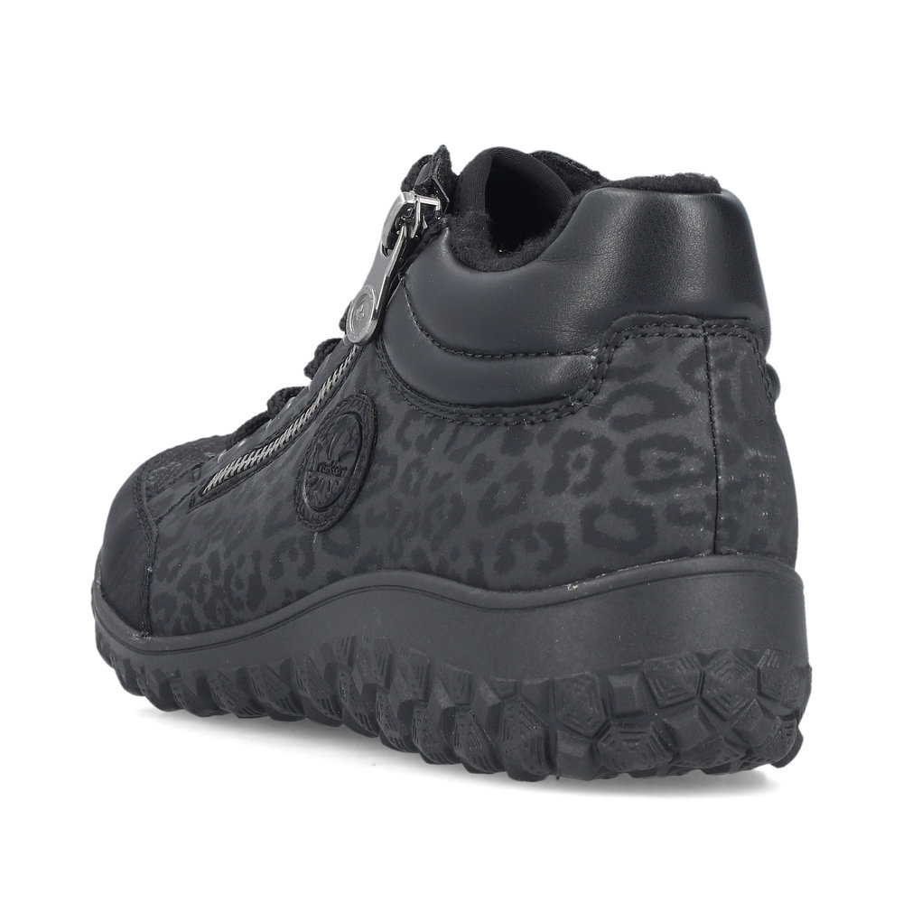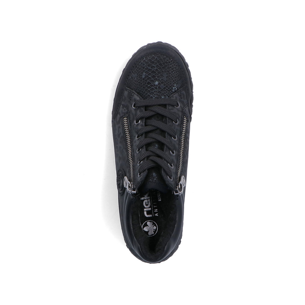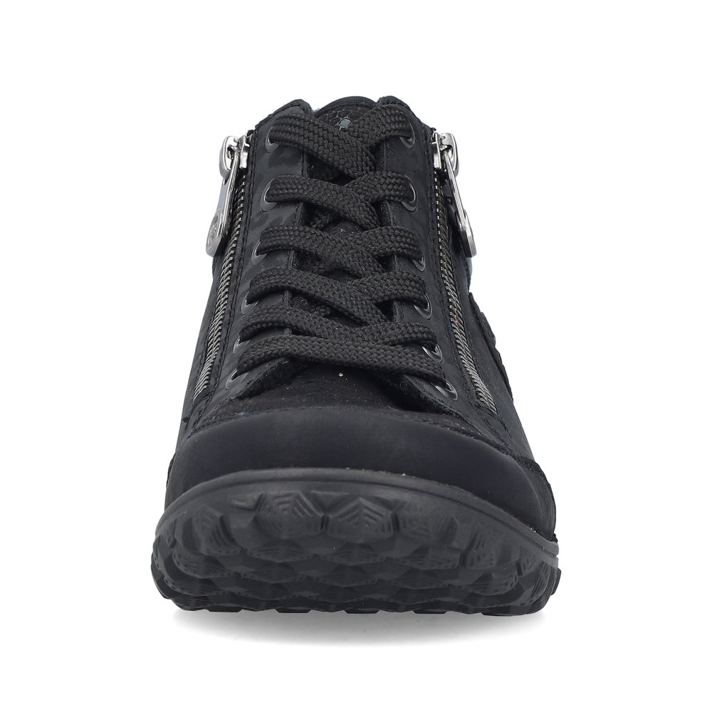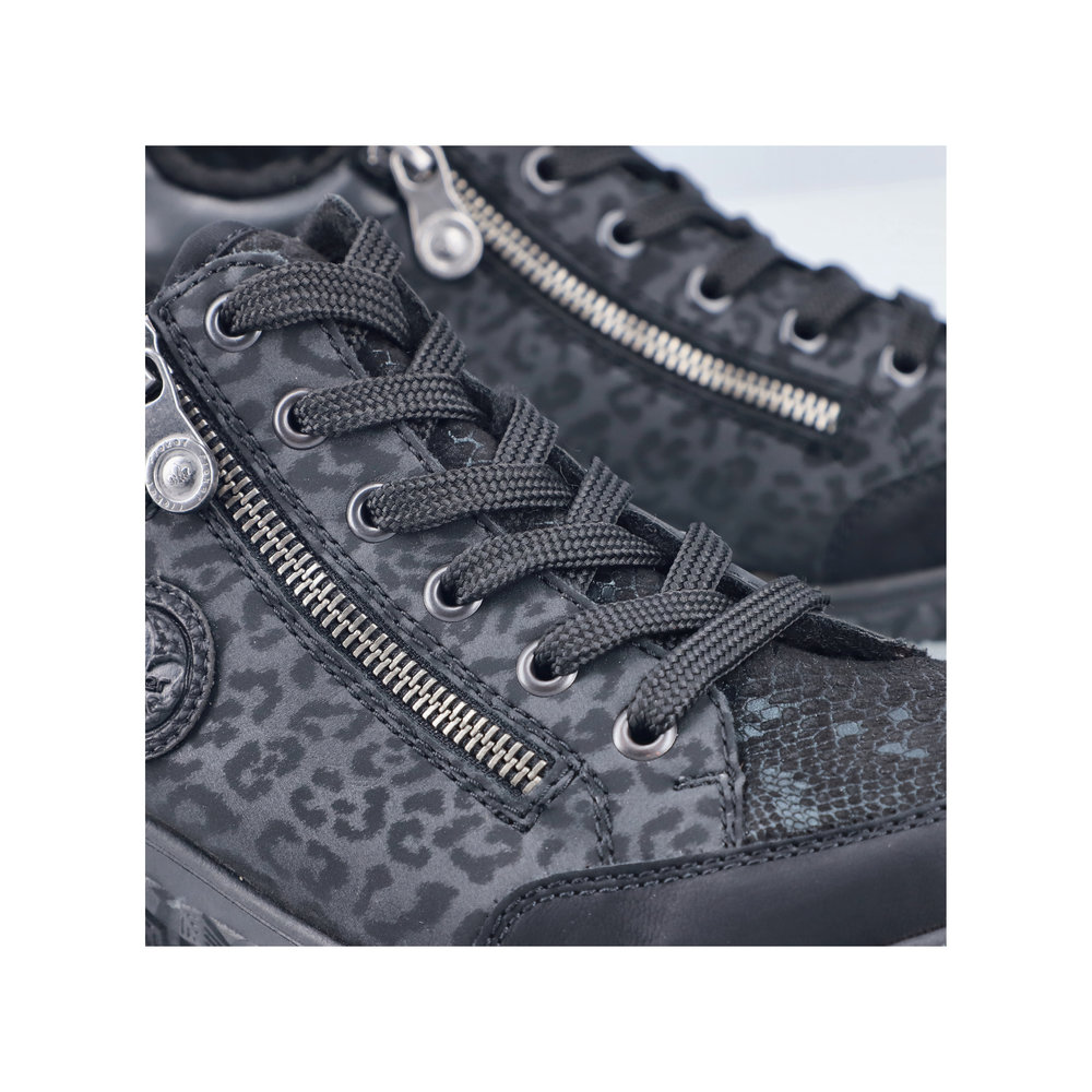 Rieker – kävelykengät kahdella vetoketjulla ja nauhoilla ovat helppokäyttöiset ja todella miellyttävät jalassa. Pehmeä, muotoiltu ja joustava Antistress-pohjallinen tuo käyttömukavuutta ja askel tuntuu rennolta ja kevyeltä. Pohja on kumipohja. Lestin on leveämpi Extra Wide -lesti.