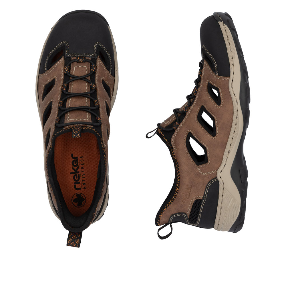 Rieker – kävelykengät READY2GO-kantakapilla ovat rennon mukavat kengät joustavilla nauhoilla ja hengittävällä päällisellä. Kengät on todella helppo pukea erikoismuotoillun READY2GO -kantakapin ansiosta. Kengät voi vain painaa jalkaan ilman nauhojen sitomista. Kengissä on kevyt ja mukavan joustava ulkopohja. Erinomaiset yleiskengät kevään ja kesän menoihin.