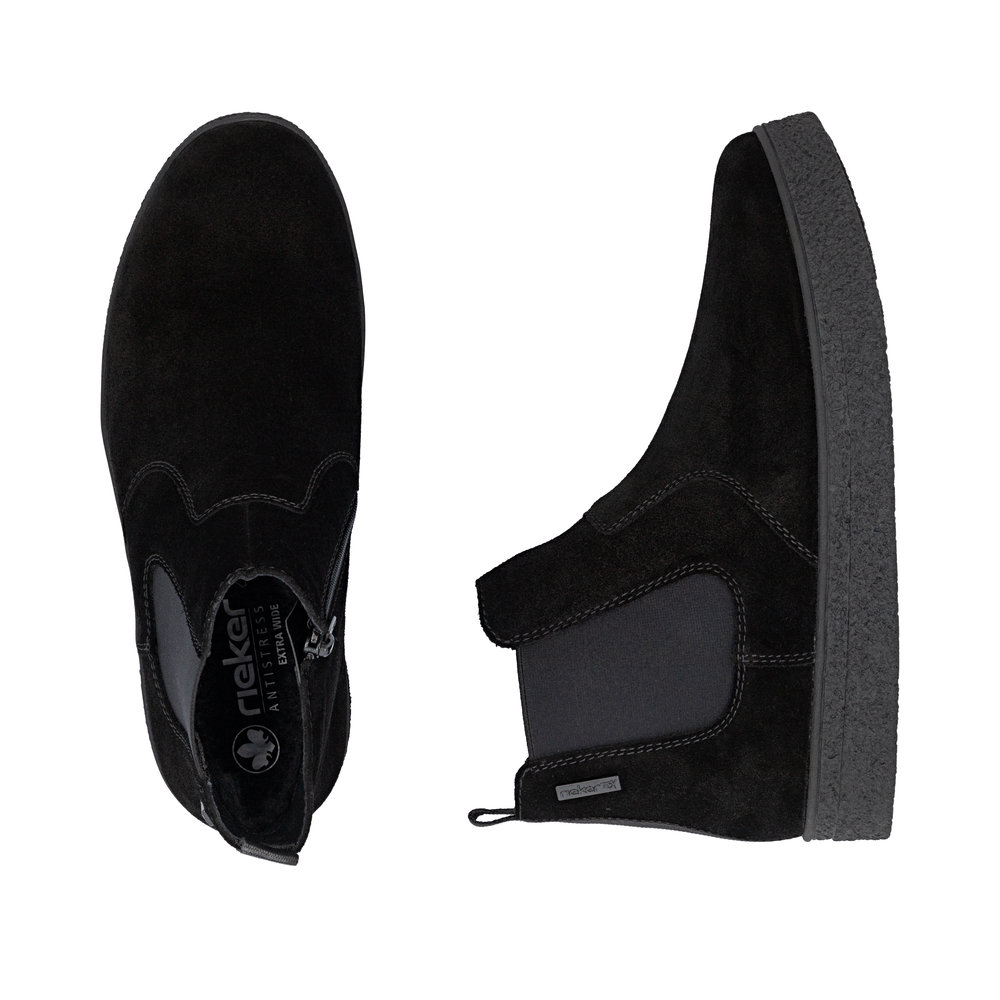 Rieker – mokkanahkanilkkurit RiekerTex-kalvolla ovat tyylikkäät kengät syksyn ja talven menoihin. RiekerTex-kalvon ansiosta jalat pysyvät kuivina kosteammallakin kelillä. Sisäsivun vetokejtun avulla kengät on helppo pukea. Lestin leveys on Extra Wide. Pohja on kestävä kumipohja.