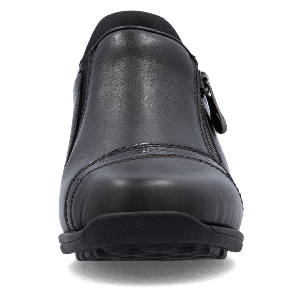 Rieker – READY2GO-kantakapilla ja RiekerTex-kalvolla ovat rennot ja mukavat kengät syksyn kosteampiinkin keleihin. Kengät on helppo sujauttaa jalkaan erikoismuotoillun kantakapin ansiosta. Kengissä on lisäksi vetoketju, joka helpottaa kenkien pukemista tarvittaessa. Kengät ovat vettähylkivät ja päällinen on mukavan pehmeää nahkaa. Pohjallinen on irroitettava Antistress-pohjallinen ja pohja on kevyt ja joustava kumipohja. Lesti on Extra Wide-leveydellä.