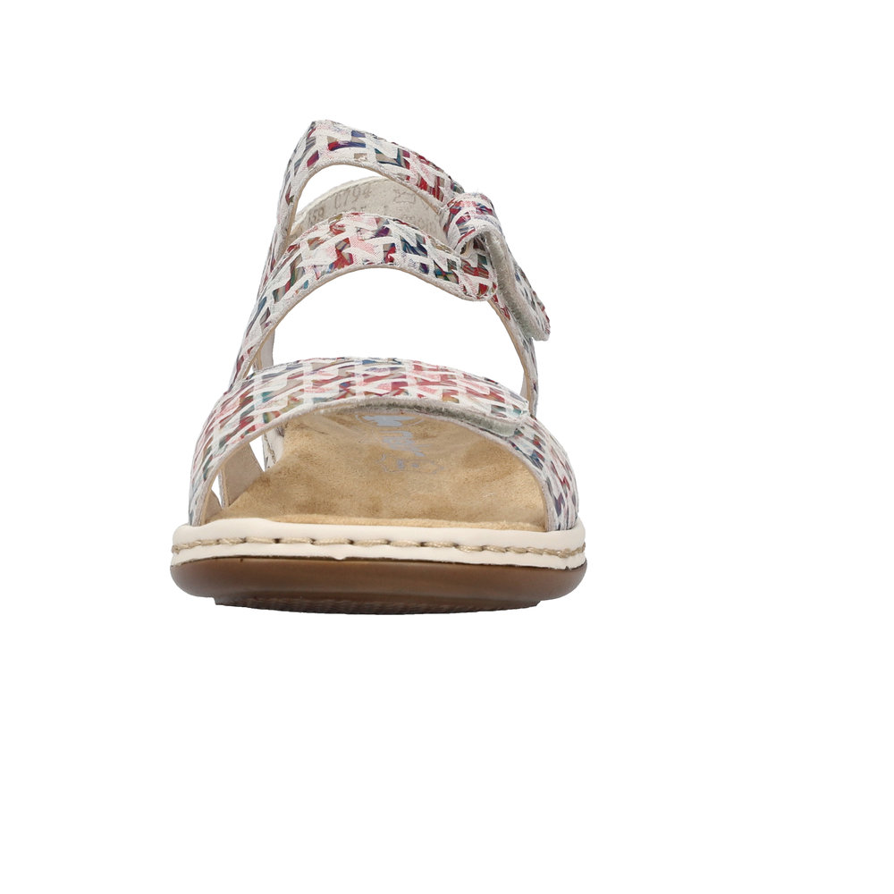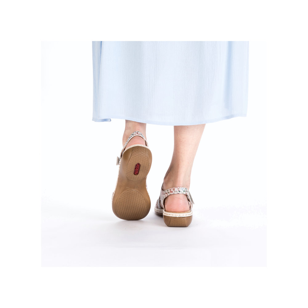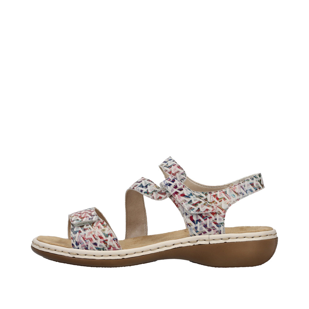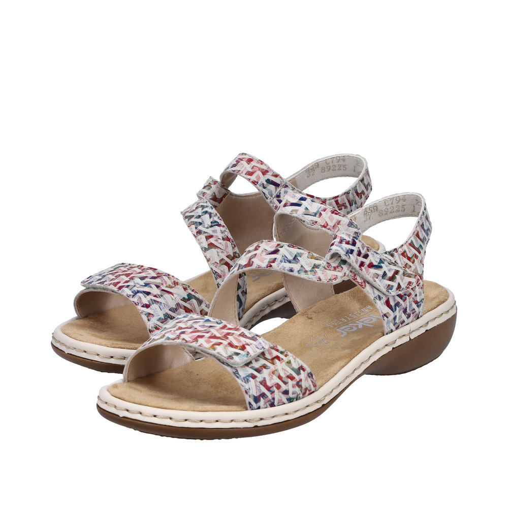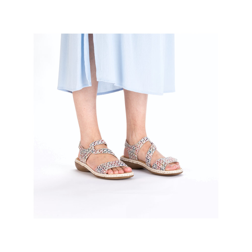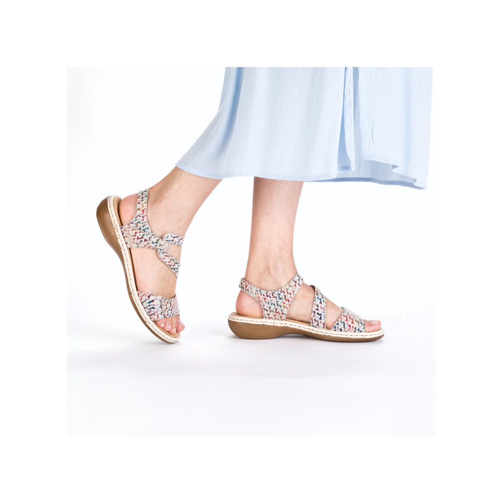 Rieker – sandaalit kahdella tarrakiinnityksellä ovat kauniit ja toimivat kengät kesäisiin säihin. Päällisen remmejä voi säätää portaattomasti tarralla, jolloin sandaalit istuvat tukevasti jalkaan. Sisäpohja on miellyttävän pehmeää mikrofiber- materiaalia, joka on mukavan tuntuinen jalkaan.