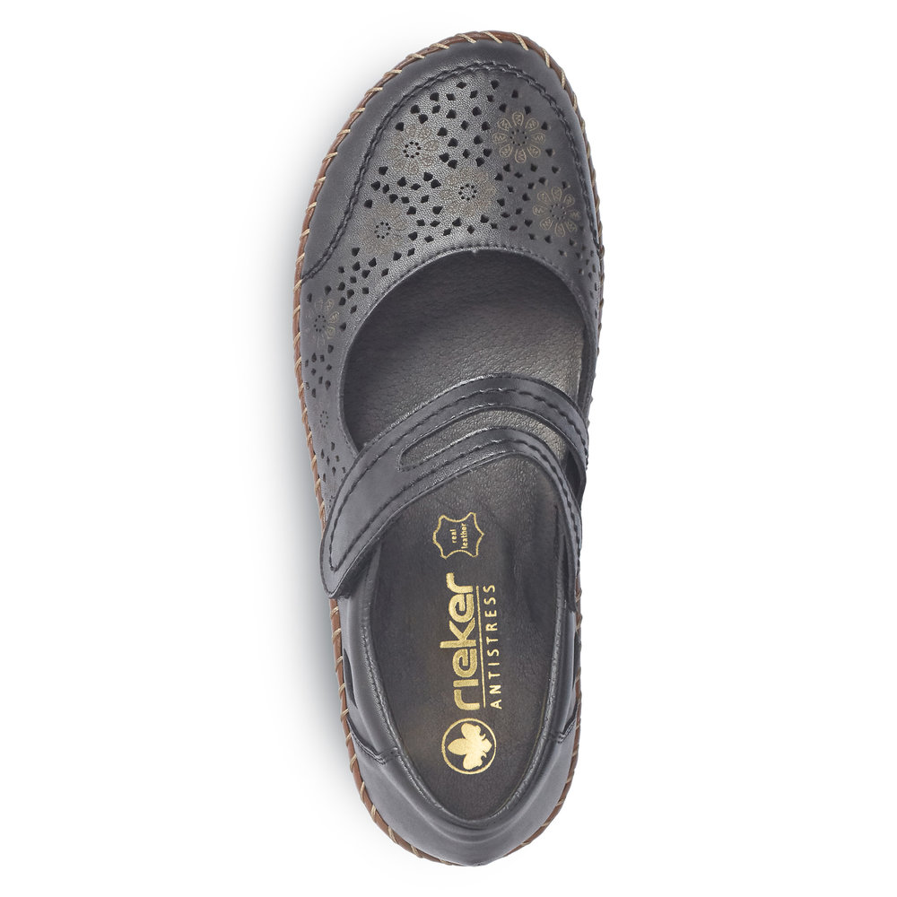 Rieker – kävelykengät tarrakiinnityksellä ovat kauniit ja helppokäyttöiset kengät kesäisiin menoihin. Tämä rento kesäinen klassikkomalli on ollut Riekerin yksi myydyimpiä malleja jo vuosia. Lesti on reilu, ja tarraremmillä kengät pysyvät tukevasti jalassa. Pohja on paksu mutta silti kevyt ja sisältä pehmennetty. Tämä malli sopii niin hameen kuin housujenkin kanssa ja käy hyvin myös työkengäksi.