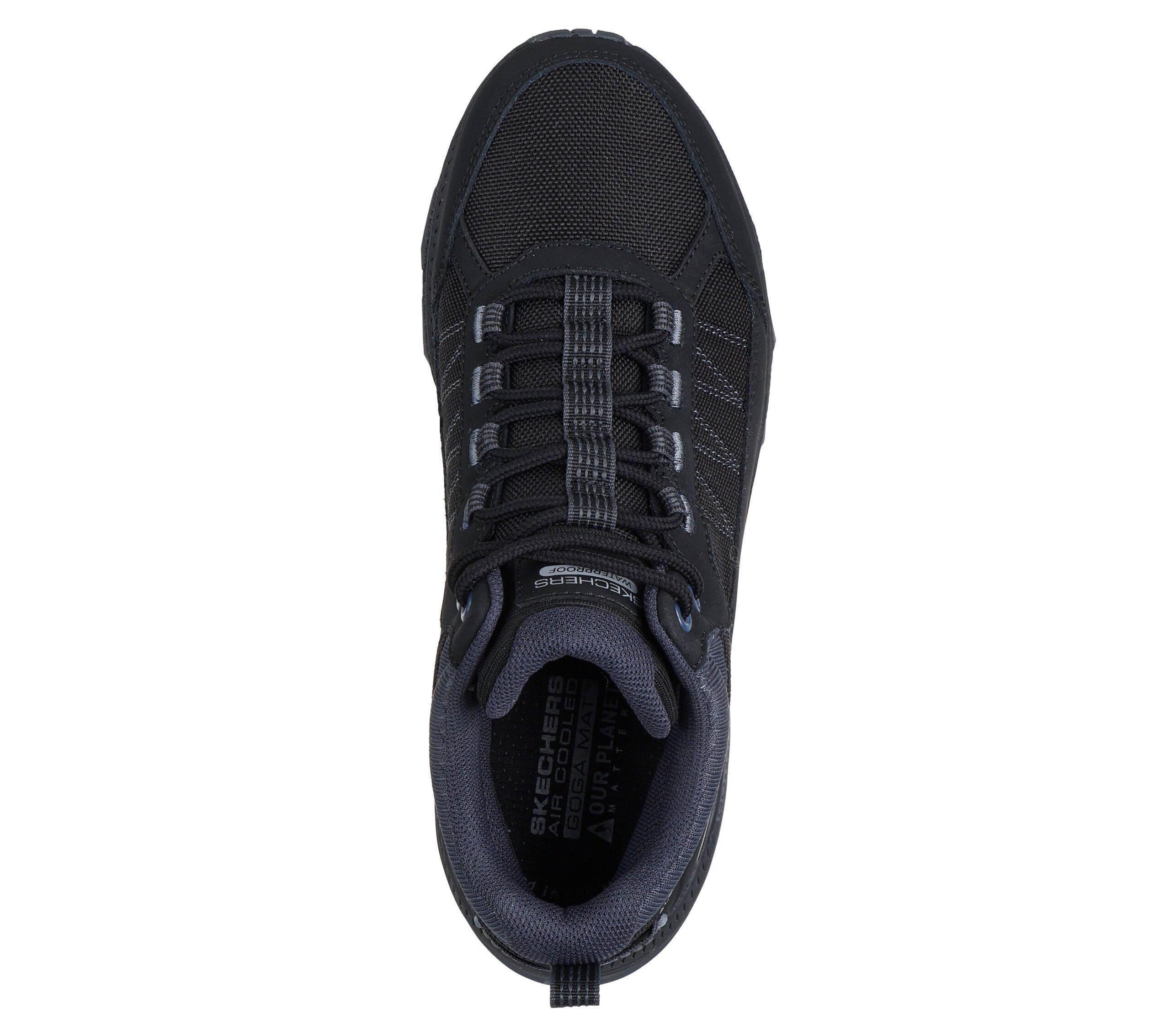 Skechers – GO RUN Trail Altitude 2.0 – Cold Creek – Waterproof – kävelykengät sopivat syksyisiin ja talvisiin keleihin ja maastossa liikkumiseen. Kengillä voi harrastaa myös polkujuoksua. Kengät ovat vedenpitävät ja niissä on kestävä ja kuvioitu kumipohja. Kengissä on irroitettava Air-Cooled Goga Mat -pohjallinen.