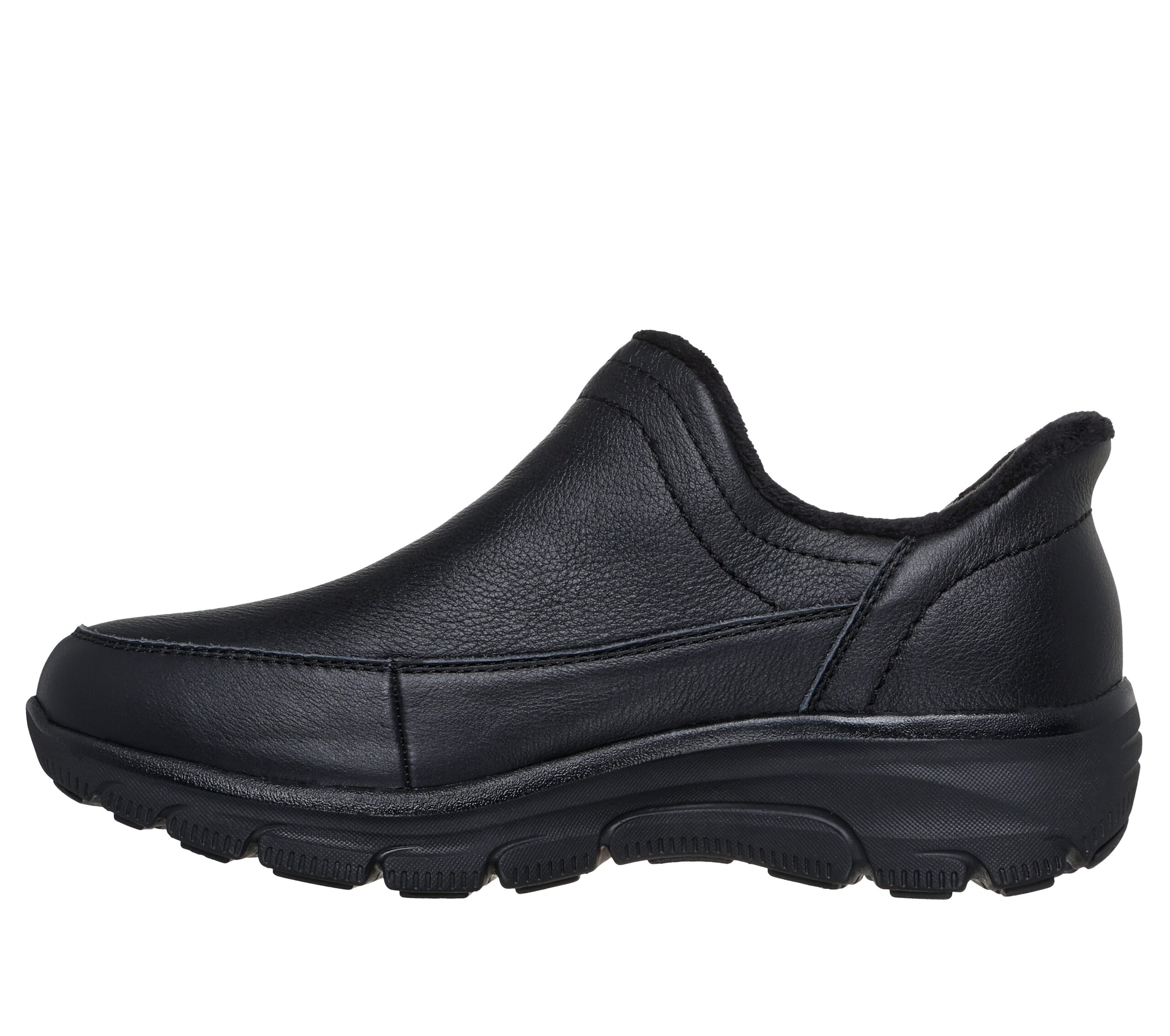 Skechers – Relaxed Fit: Slip-ins: Easy Going – Modern Whisper – kävelykengät ovat vaivattomat ja mukavat kengät nahkapäällisellä ja tekoturkisvuorella. Kengät on helppo sujauttaa jalkaan Hands Free -ominaisuuden ansiosta ja niissä on Relaxed Fit -lesti.