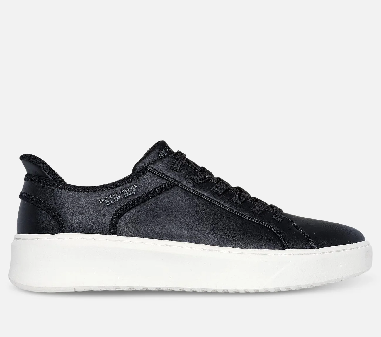 Skechers – Slip-ins: Court Break – Double Vented – miesten kävelykengät ovat modernit klassikot jokapäiväiseen käyttöön. Kengät on helppo sujauttaa jalkaan Slip-ins -muotoillun kantapääpaneelin ansiosta. Kengissä on synteettinen päällinen ja joustavat nauhat. Air-Cooled Memory Foam -sisäpohjan ansiosta kengät tarjoavat erinomaisen hengittävyyden ja mukavuuden.