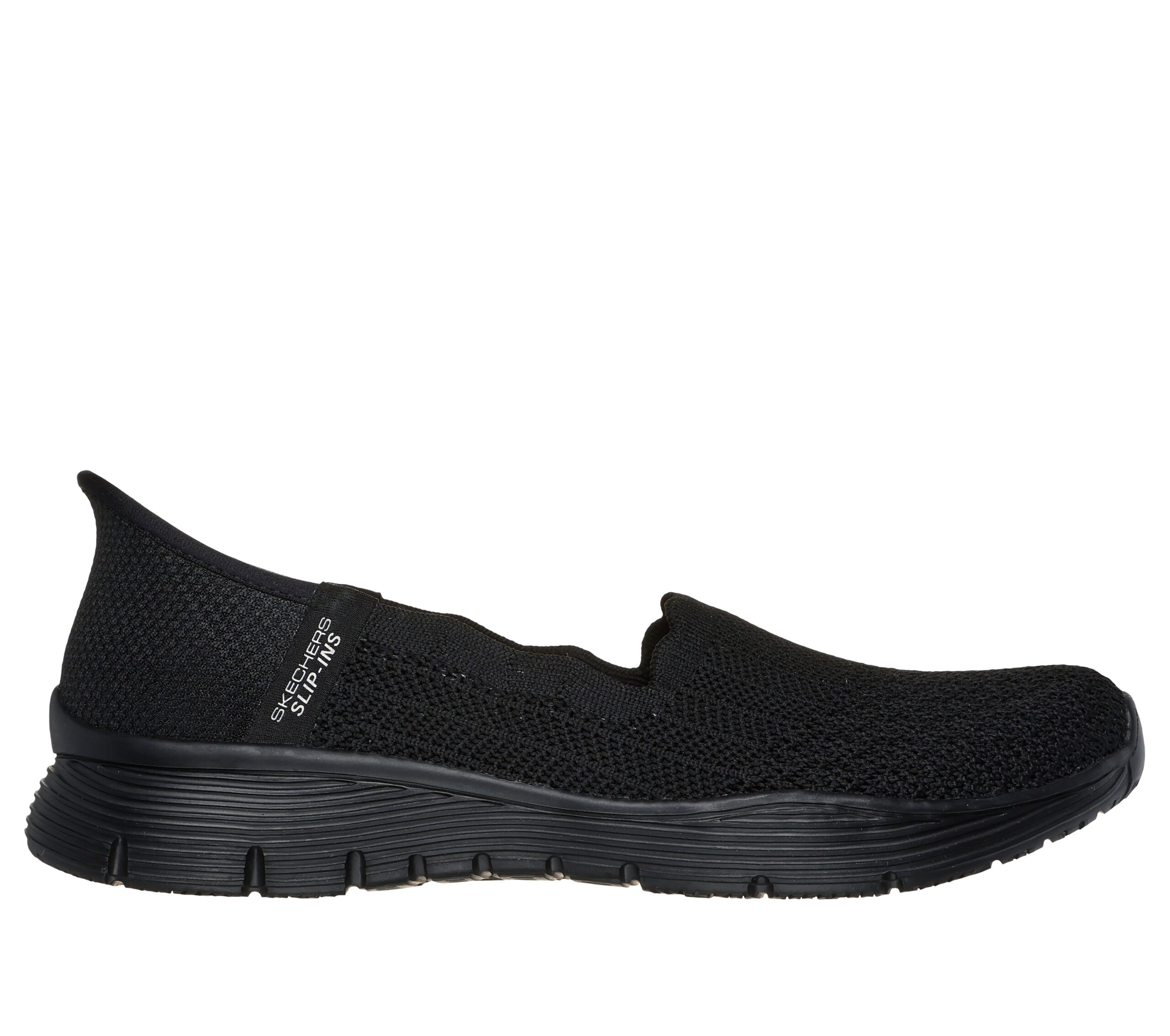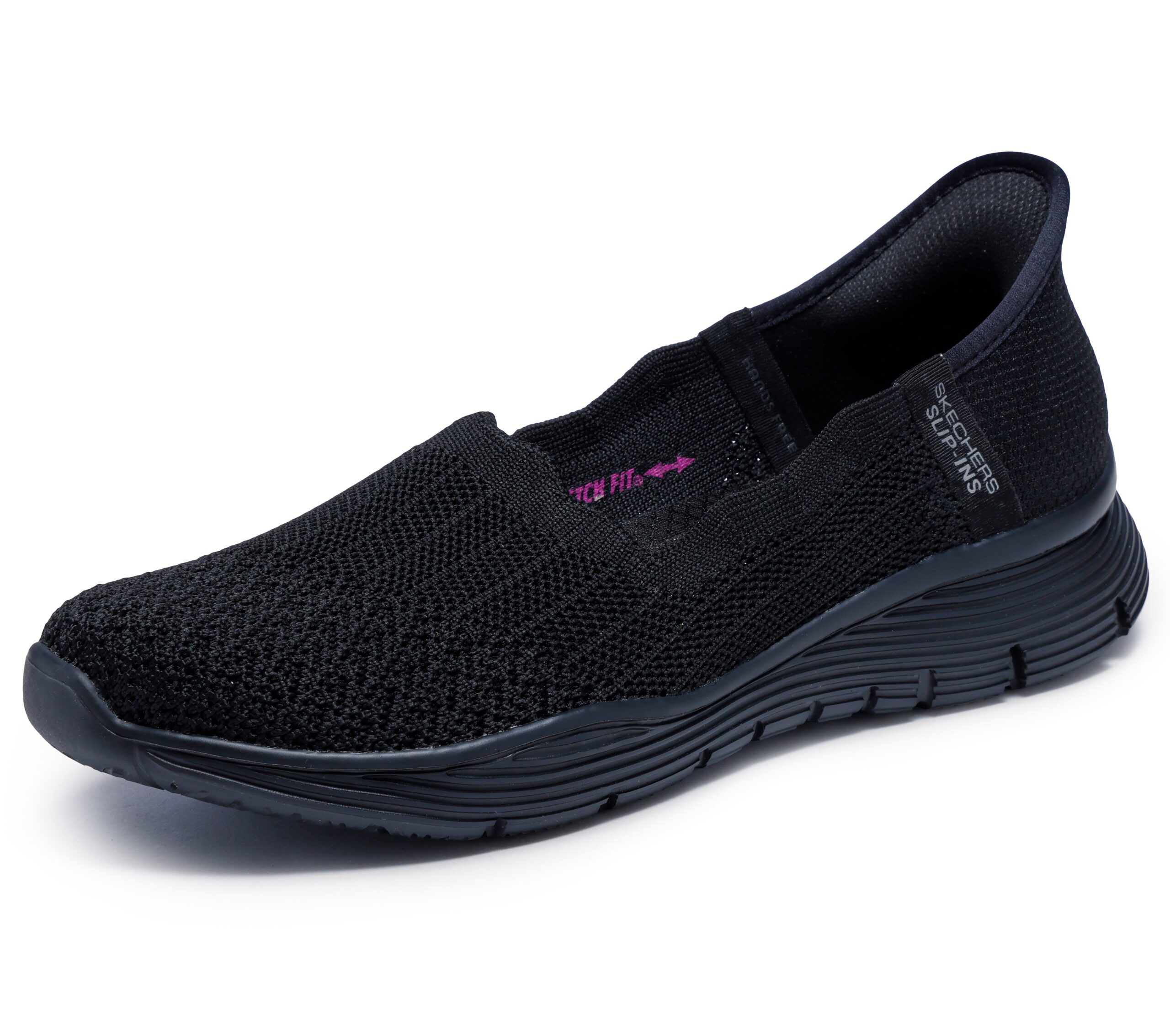 Skechers – Slip-ins: Seager – Believe It – kävelykengät ovat rennot ballerinamaiset kengät kesäisiin menoihin, kävelyyn, työkengiksi ja vapaa-aikaan. Kengät on helppo sujauttaa jalkaan Hands Free -ominaisuuden vuoksi. Kengissä on neulospäällinen aaltoilevalla reunalla ja pehmustettu Air-Cooled Memory Foam -pohjallinen.
