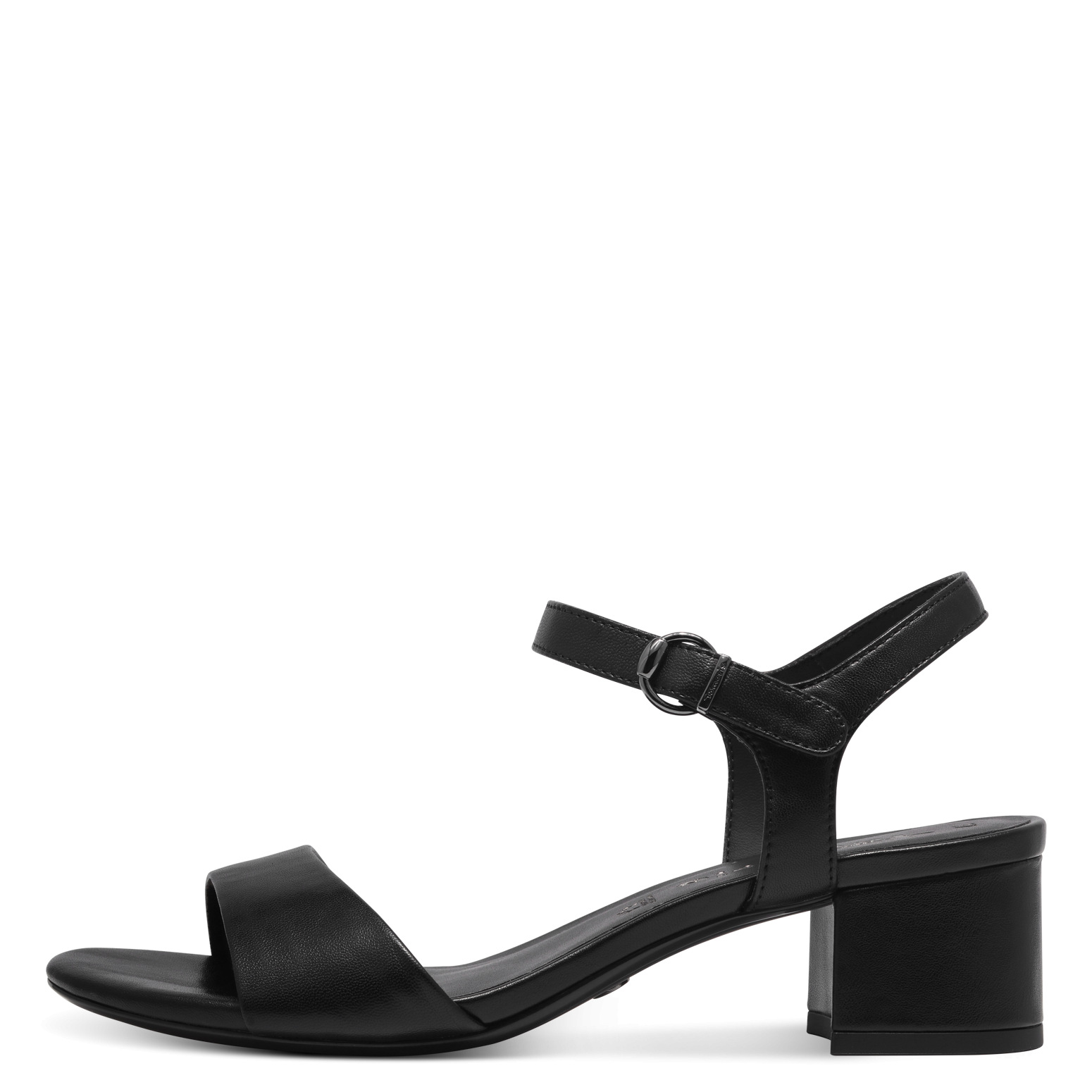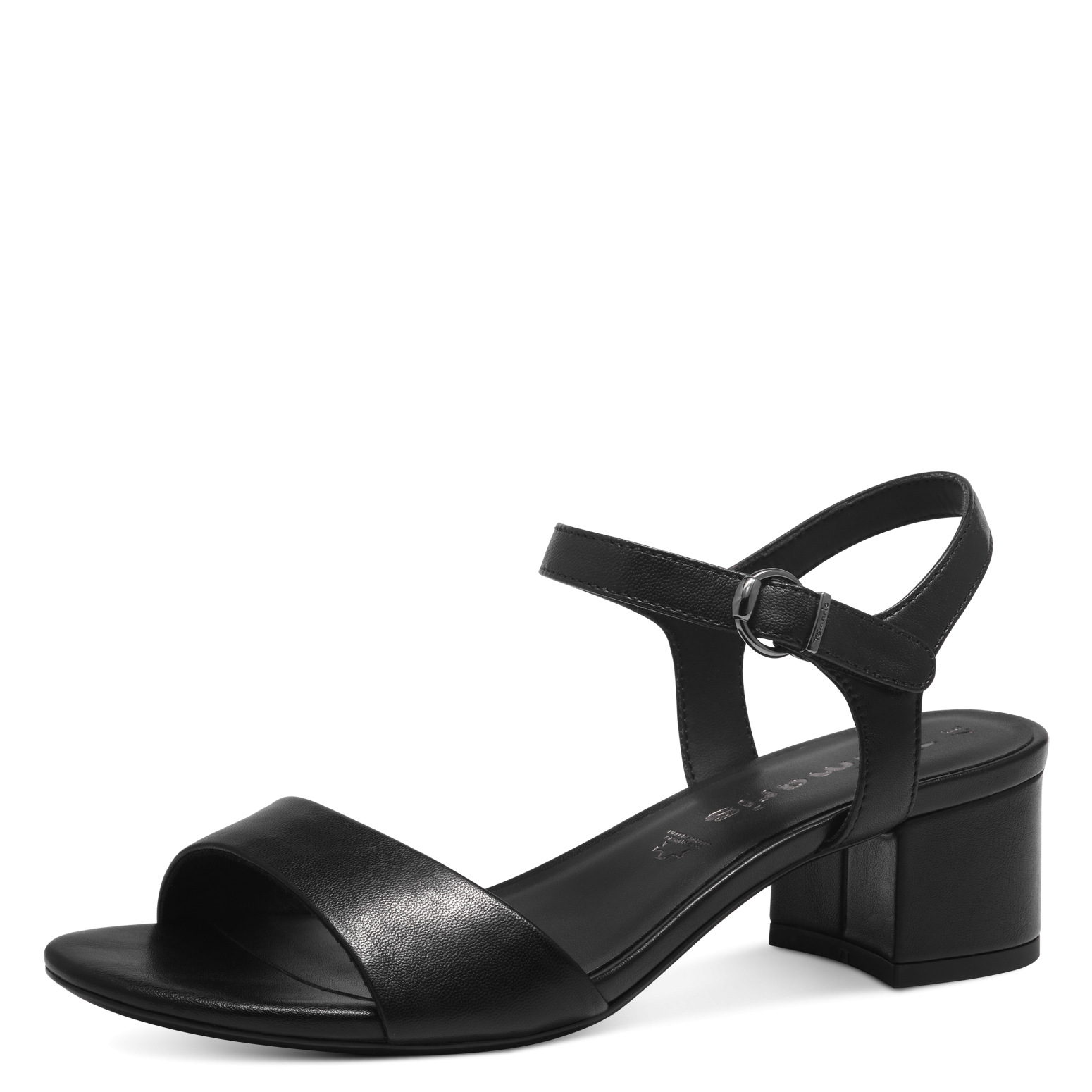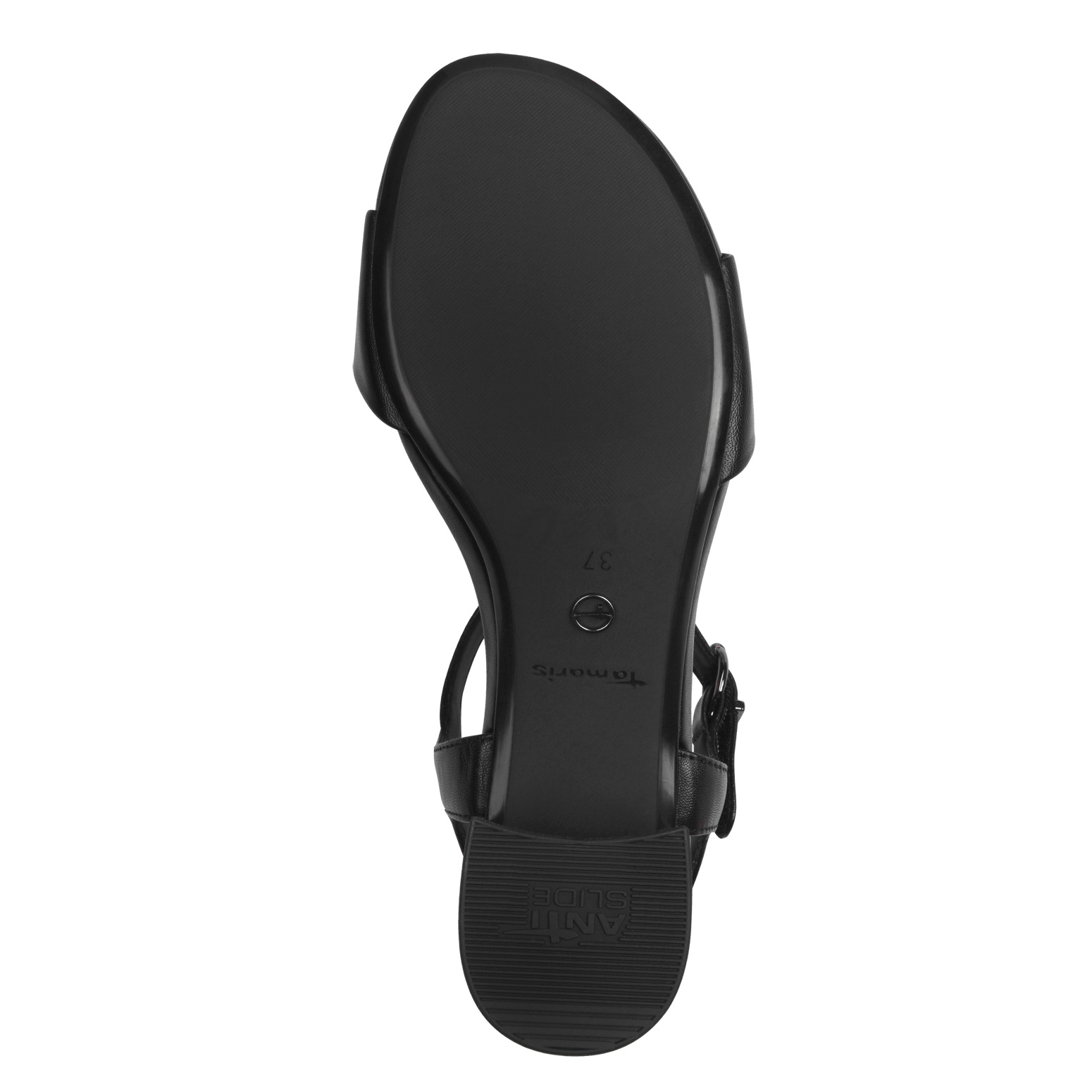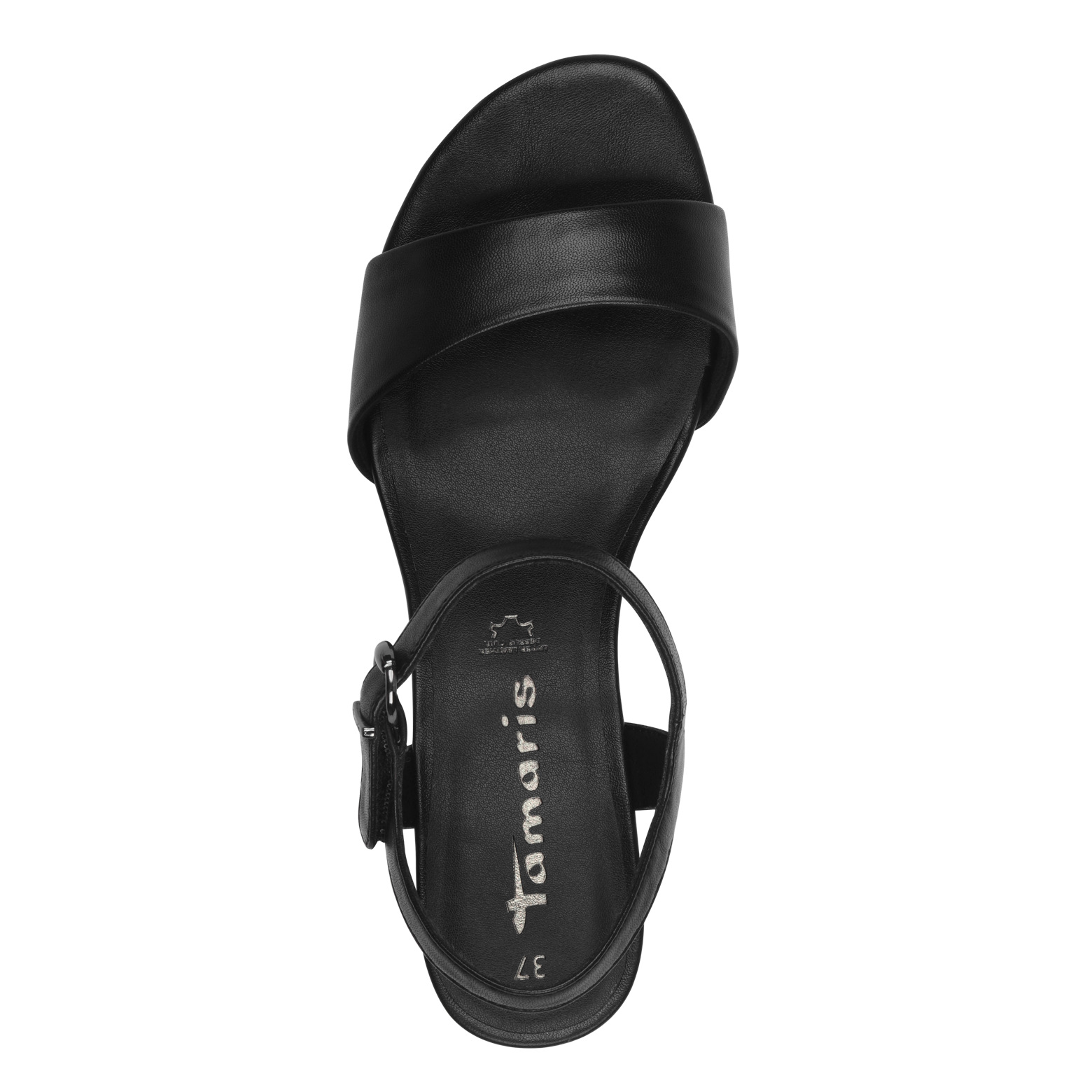 Tamaris – juhlasandaalit, jotka sopivat myös arkikäyttöön ja kesäisten päivien viettoon. Kenkien päällinen on nahkaa. Leveä kantapää takaa vakauden.