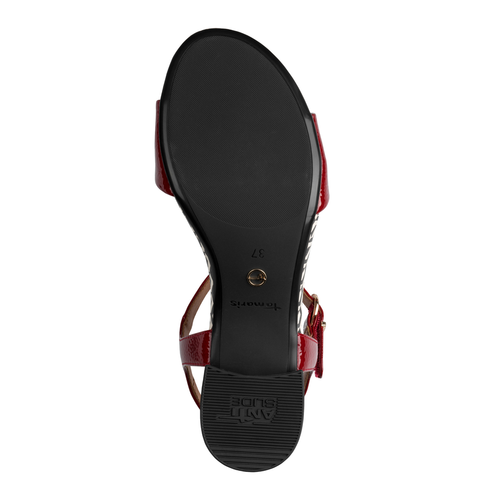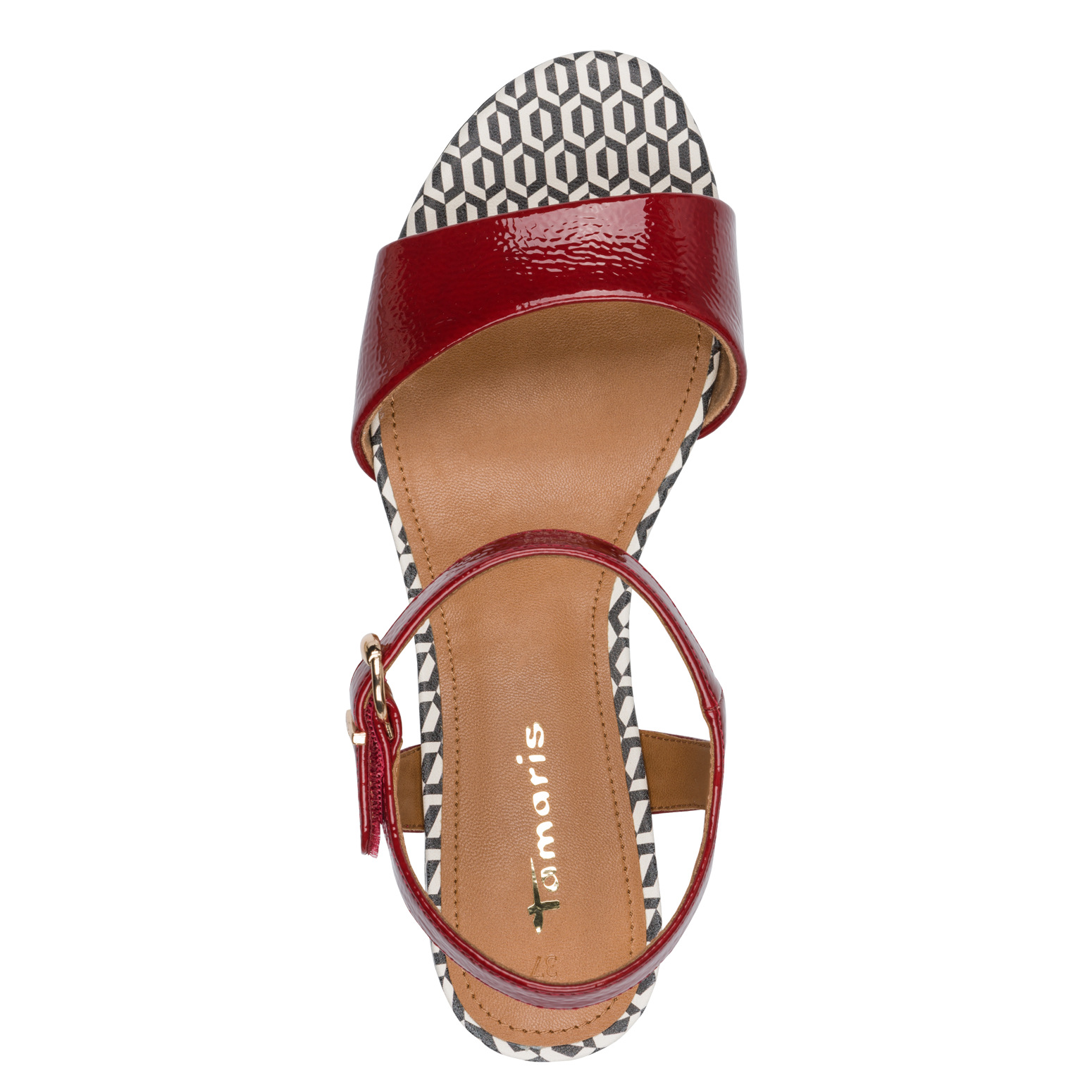 Tamaris – juhlasandaalit, jotka sopivat myös arkikäyttöön ja kesäisten päivien viettoon. Helppohoitoinen päällinen on keinolakeria. Leveä kantapää takaa vakauden.